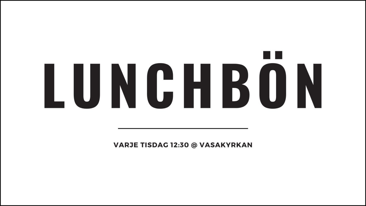 Varje tisdag har vi lunchbön i Vasakyrkan. Vi träffas 12:30 för att tacka och lova Gud. Ingen anmälan krävs!